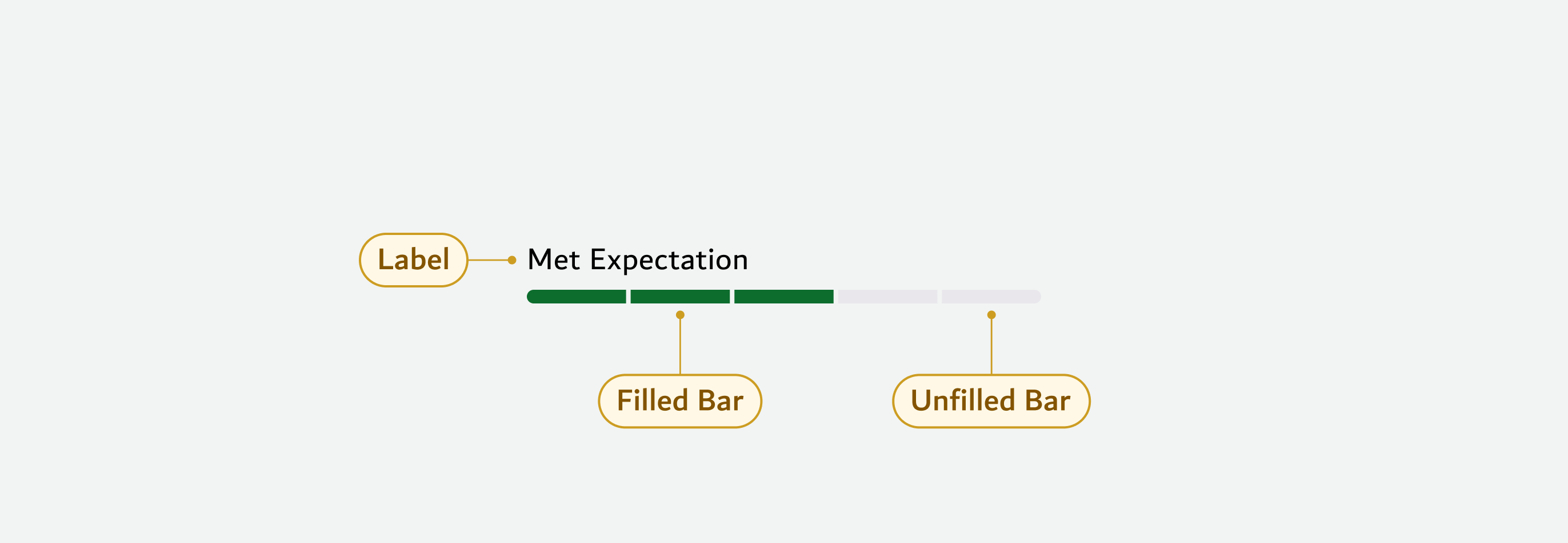 **Filled Bar**: Shows the portion of the bar that has been completed or that meets the specified expectations. The filled sections indicate achieved progress or met criteria.